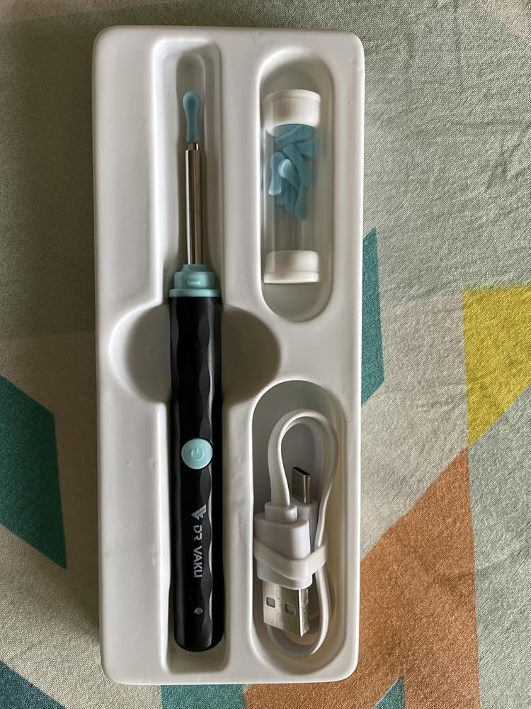 Package Contains: It has 1 Ear Wax Removal Kit, 6 Replaceable Silicone Ear Tips, 1 Earwax Removal 8-piece set, 1 Type-C Cable, 1 User Manual